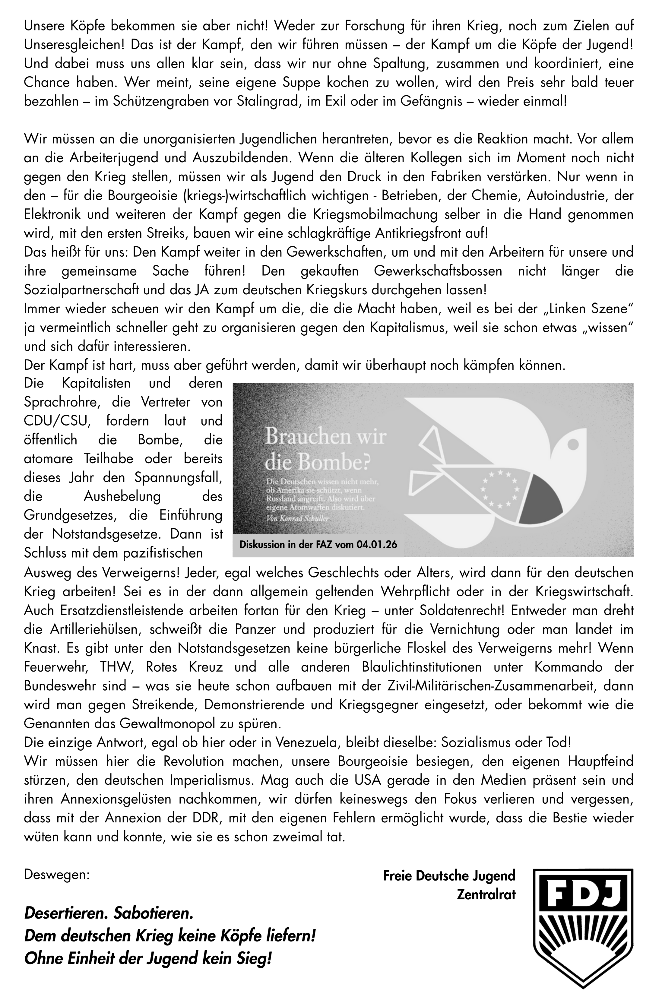 Was dem Angeklagten vorgeworfen wurde, konnte nicht nachgewiesen werden. Dafür aber, welcher Geist inzwischen hier Urteile spricht. Es ist die Leitkultur, deren Unschärfe es jedem Richter ermöglicht, aus dem Himmel heraus zu urteilen. Es ist die Leitkultur, gegen die wir den Kampf auf nehmen müssen.